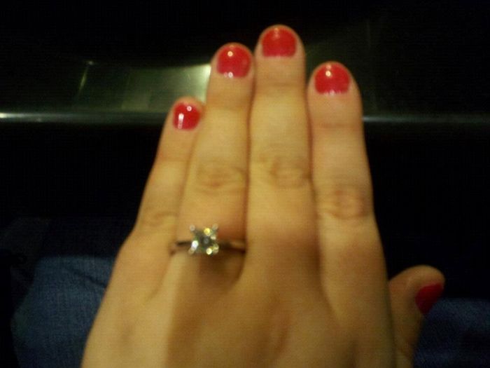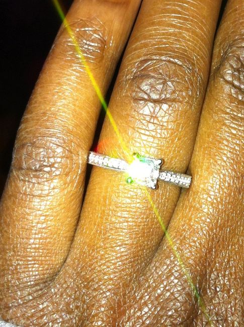 Here's my ring! The diamond is beautiful...I love the quality! The band is very comfortable too. My fiance did an amazing job...it's timeless Smiley smile Now just have to pick a wedding band to go with it...