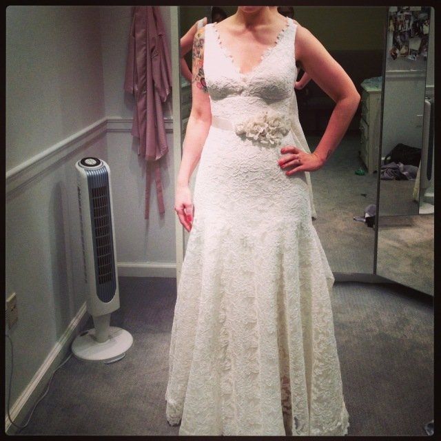 I'm stressing! I absolutely hate how I feel in my dress. When I bought the dress I was 30 lbs heavier, after much diet and exercise, I was finally ready to do my fittings. My dress needed to be taken in massive inches everywhere. 65 pins total. Now that it fits, I can't wear any kind of undergarment or shaper. You can see any line, bone or seem through the lace. The lady had to sew in cups into the dress just so I didn't feel so naked. However, now I feel like all you notice us my belly! Like the first thing you see isn't me in the dres, it's my belly in the dress. I have bought about 7 different shapers and none work. I'm so depressed, and I feel terrible. I bought a second dress for the reception, which I love and feel great in. I wish I went for an Aline dress, since so bottom heavy. Instead I have this super fitted dress, I look like a fat white beyonce. Ugh help!