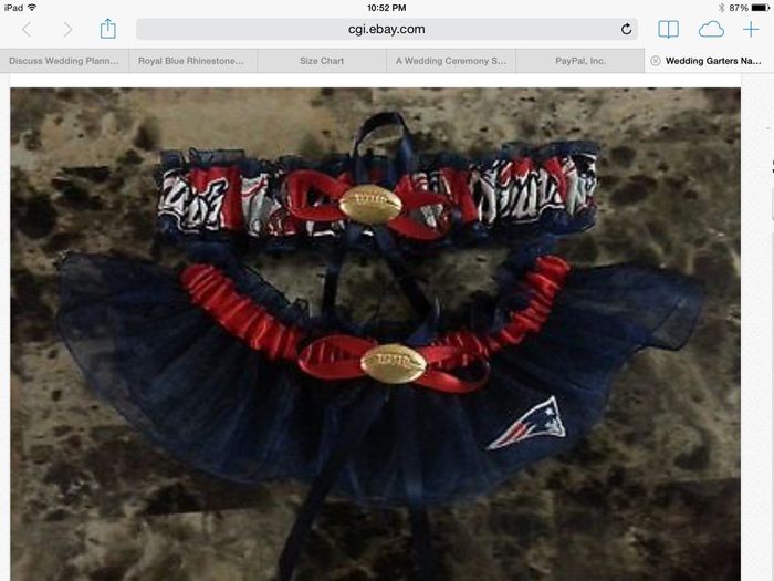 I must really love him because this is the garter I bought. He is a huge Patriots fan and I'm a huge Ravens fan but as a surprise I'm going to have a Patriots garter. I may have to incorporate the Ravens in there somehow though. I can't let him think he converted me Smiley winking I think we will put the garter on a football and toss it. Thanks for that idea!