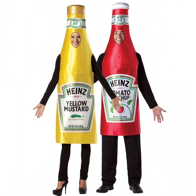 So I want our wedding to be really Halloween themed and I want everyone in costumes. We want to be silly for the ceremony and more serious for the reception. My fiancé wants us to wear ketchup and mustard costumes. I think its cute and a good couples costume.