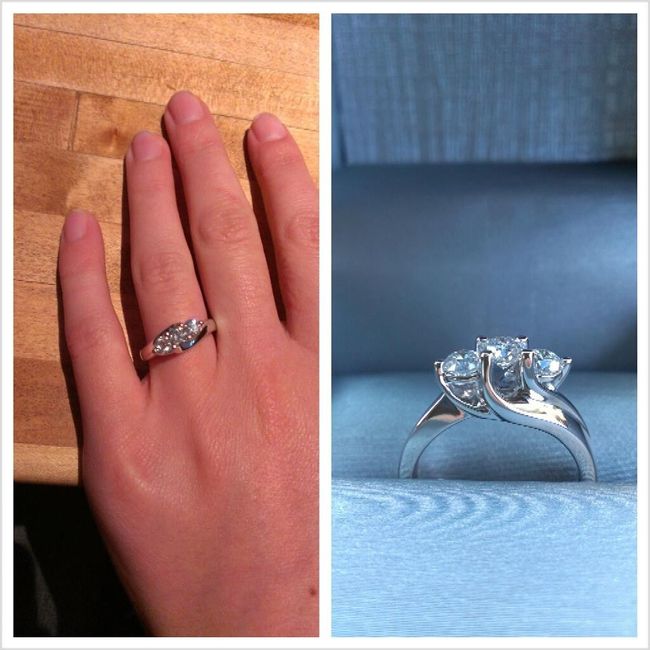 The first ring is the one FH proposed with. It was so bulky and sat so high I couldn't stand wearing it for the rest of my life haha. The second ring is the one we designed together and I LOVE it. It suits me much better, and I never hit it on anything.