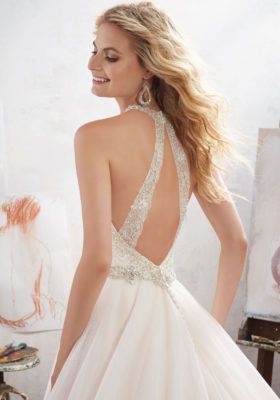 Who is wearing a halter top wedding dress? What jewelry did you choose to go with it? Mine is not a high halter top, just the straps. It has beading on it so I was originally going to wear larger earrings but I think I've decided to go with a pearl and diamond necklace with matching earrings.