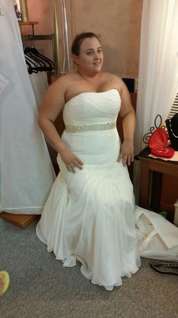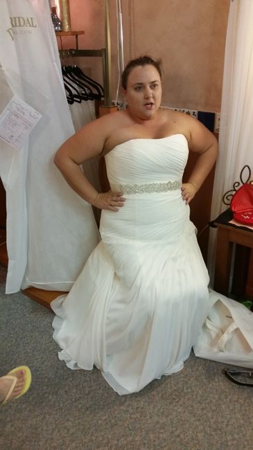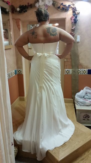My seamstress has been super swamped and wasn't able to get the dress steamed yet so my sister is picking it up tomorrow morning for me while I'm at work. The seamstress had my torsolette bra pulled super tight; I'll include a pic of me trying to sit down with the torsolette pushing into my rib cage, lol. By the time the reception comes, it hopefully it can be loosened, or removed, so I can sit.