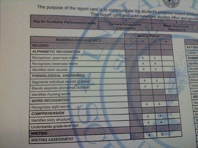 My son is in Kindergarten, he's 6 yo. The past two report cards have been great academically but his classroom behavior is not. They are graded on both. I'm at a loss of whether or not I should punish him. He exceptionally smart and this shows it so it's not like I can punish him for "bad grades" but as you see he has a lot of "N"s in the characteristics section. I had a long talk with him about it and he was very teary-eyed and upset about it. I grounded him from his Wii, which he just got a new game for so it's killing him to not be able to play it. I'm just at a loss of what I should do. He's a very hyper boy with a lot of energy, and his teacher does have a lot of patience for him.
