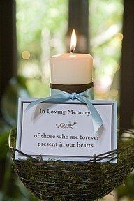 Hello brides, I have a few people I need to do memorials for at the wedding (including my FH mother), so it needs to be appropriate, as in it properly remembers her without throwing it in peoples faces. Originally I thought candle memorials, but candles dont really go with my wedding. Its a day lake wedding, so everything will be bright and candles dont make sense. My theme is trees and the feel of my wedding is natural and organic.