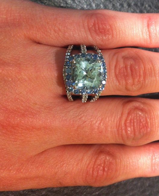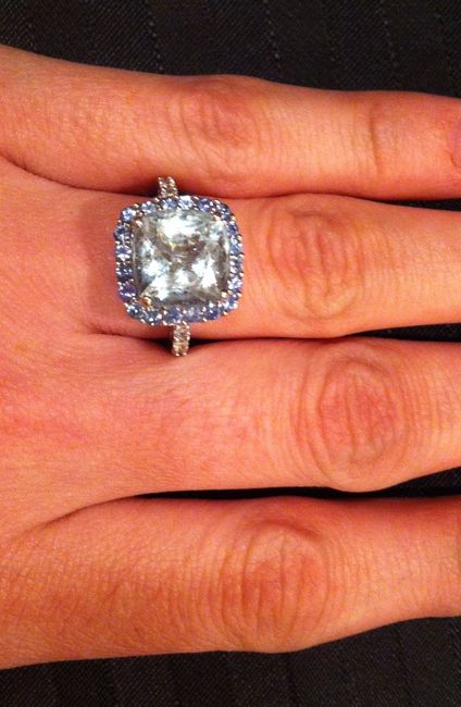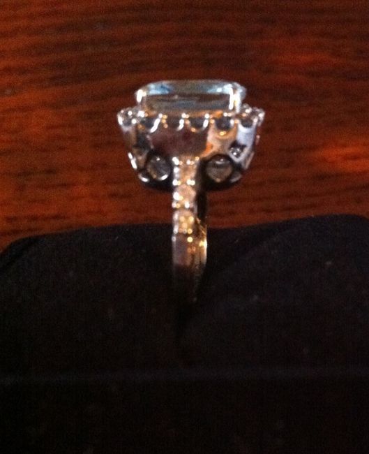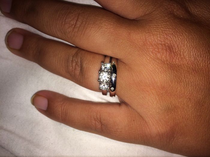 The wedding band we chose and ordered online came in today. My engagement ring is an emerald cut diamond solitaire with a plain band, and the wedding ring is 5 round diamonds. The rings don't match, or fit perfectly together, but I think that love them together anyway. What do you all think, and what we you doing or planning on doing for yours?