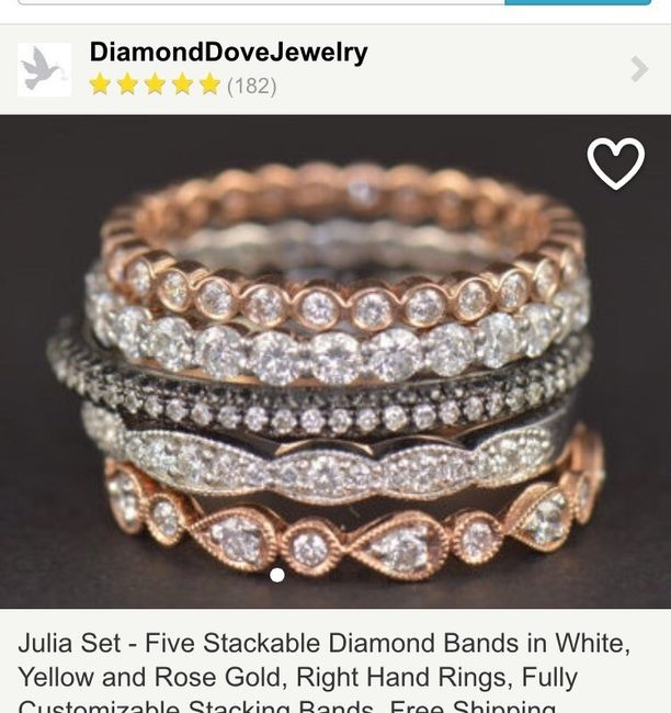 Would love to see some pics of rings paired with bands in a different gold/metal! And would also love to see band choices of other ladies with solitaires, even if not mixed metals, because yay for pretty jewelry.