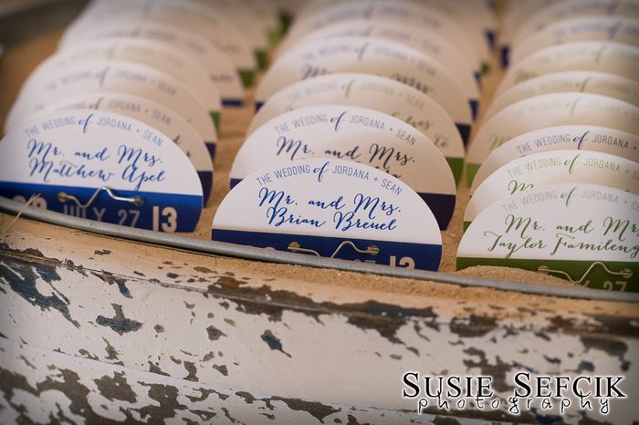 We're going to get married down the shore, so of course, we want to have some nautical touches at the cocktail hour and reception as part of the decor (thinking of beach badge escort card, table numbers with knots) with a nod to Jersey (thinking mini taylor ham/pork roll sandwiches to-go for the favors and NJ welcome bags with a heart on the town we're getting married in).