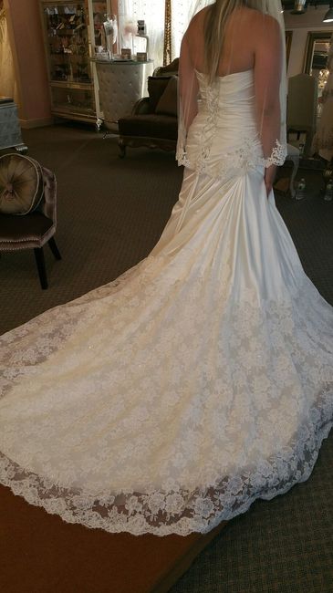 Hey everyone! So I'm having a hard time trying to decide what kind of veil I want with my dress. At the store that I bought my dress they put this veil on with lace trim (in pics) that didn't come with a blusher. I really had my mind set on a blusher so they put a separate blusher in front but I don't like how you can see where it cuts off in the picture and that it's two veils. I also wanted it to be one piece but now I'm not sure if that's such a good idea either. My hair will be half up/half down like the picture and people are telling me to have the veil start below where my hair is parted. Then I started thinking cathedral because I love how they look in pictures but my MOH stated it would take away from all the sparkles in my train. I'm all over the place - I'm so confused and thought I would ask to see what your inputs were.