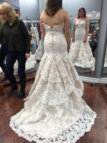 I don't really love bustles and am actually toying with the idea of cutting the train off my dress completely but would love to see how everyone bustled their dress, especially mermaid styles with multiple layers of fabric/volume at the bottom. Hopefully I'll be able to head into alterations with a clear idea of what to do!