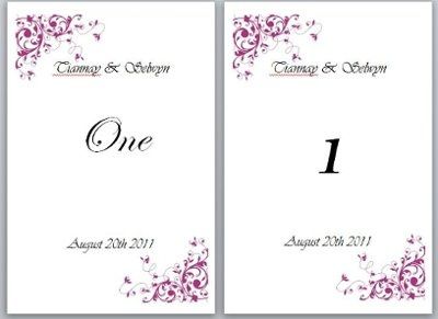 I've been searching all day to get a free template for the table numbers and i didnt come up with anything i tried creating one and no luck with that either. does anyone know where i can find a few, my colors are pink and i wana put them in a 4 by 6 up upside frame.