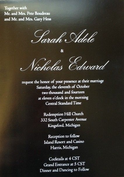 FH wants me to put his dad's middle name. and also my parents middle name or initial. I have never seen this done. Has anyone else seen this on invitations? I thought it was only the bride and groom's middle name. He says there is another person in town with his dad's name, but i dont think it is necessary as it is only his family we are inviting, and they all know we are getting married. Thoughts?