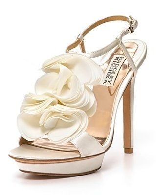 I'm looking for the right platform shoes, but can't seem to find them. My dress is "Ivory" according to the designer, but it's closer to white. It's also got clear, glasslike beading (no rhinestones).