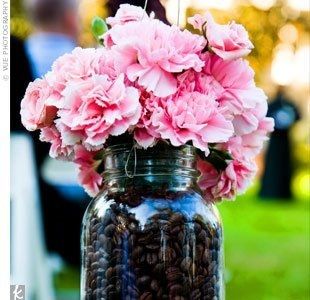 Should I fill vase #1 with coffee beans or water? There will be flowers in the vase as well.
