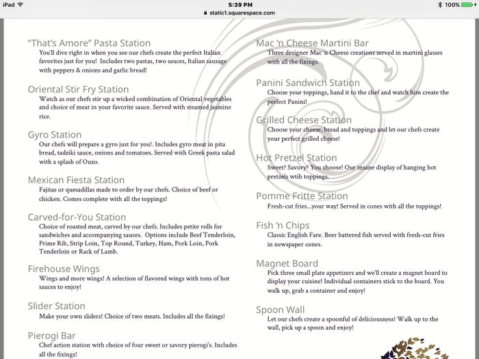 Originally when thinking of reception food I wanted heavy appetizers or food stations, but after having talked to one of my friend's mom she said since our wedding was during dinner time people will expect and want a meal. Also, when researching food stations all I found was taco stations. My fiancé and I are both relatively picky eaters and I'm kind of over the traditional wedding food *yawn* and would like something a little more creative. Any suggestions...?