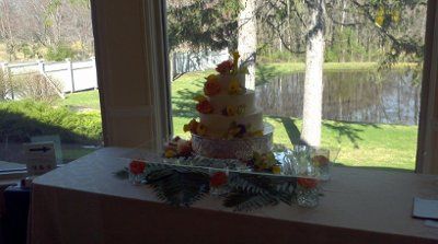 My venue includes a cake, which we decorate (or our florist) I'm planning on buying flowers at a local shop to put on the cake b/c I'm not using many flowers at my wedding. My inspiration photo I attached shows ribbon, which I like, but my wedding planner said that sometimes the icing (they use a buttercream icing) will seep through the ribbon. So I was wonder if there is a specific kind of ribbon that would work better for this or if anybody has any experience with this. The second picture is the set-up the venue does with the cake