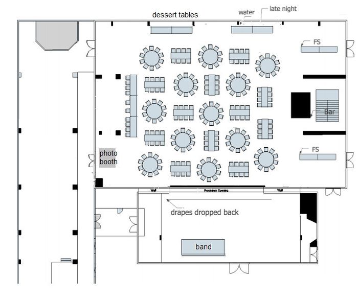 My reception space is really large, as you can see from the photo below. I was thinking about having round tables so I can spread them out a little and maybe put the dance floor in the middle, so I am utilizing a lot of the space. But, I really like the look of using 6ft rectangle tables because I can use some sort of garland for the centerpieces! But I'm not sure how I would position the tables.