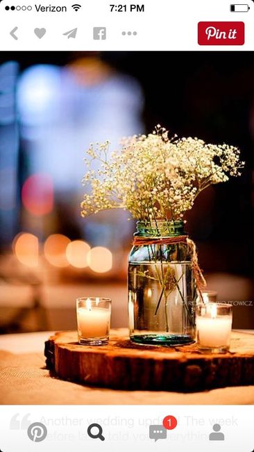 I'm working on centerpieces for my wedding in September and I can't figure out what to do that's in my budget. My colors are plum and silver glitter. We are using sunflowers, purple flowers and baby's breath. The reception is at a retired train depot so we want to do something a little rustic. Would rustic clash with the glitter? I have a pic of the centerpieces I'm thinking about. I just didn't know if rustic and glitter could go together or not! Any suggestions of cheap but pretty centerpieces without flowers. I'm thinking of doing the centerpieces like the picture or using a mirror instead of the tree cut out. Opinions please!! Thanks!