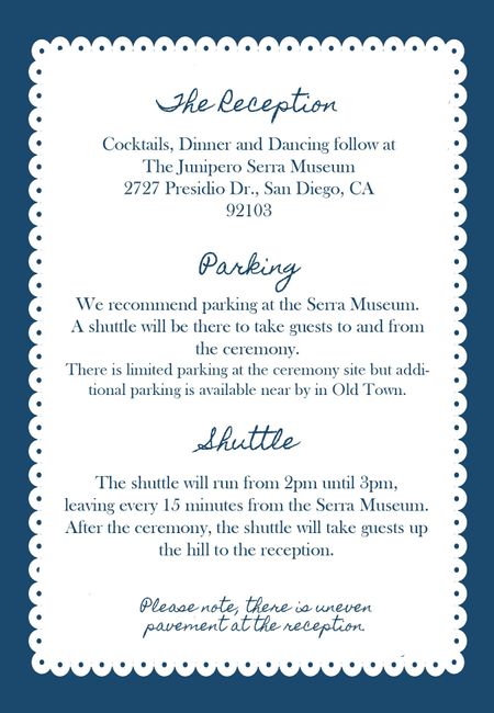 I'm the process of wording our invitations and wondered if anybody else providing shuttles for their guests included this on their RSVP cards? Did you have them indicate whether or not they would be utilizing it? How did you word it? Was it only included on your info cards?