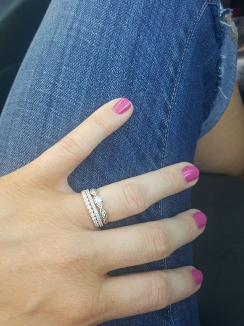 I would like to see everyone's stacked wedding rings. I tried on my wedding band the other day and noticed it looked better on top on my E-ring rather than on the bottom of it. But I know its supposed to go under the E-ring and some mentioned to me to have two wedding bands one on top and on bottom. just wondering if anyone else has done this. I would love to see some pictures!