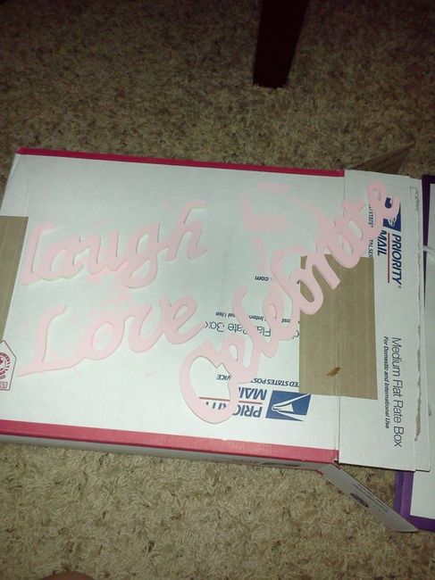 I got lots done over the weekend. Went for my 2nd dress fitting on Saturday and I have to say I think I felt the best yet in my dress - The alterations are pretty much done & OMG do I love my bustle (wish I got pictures). I got lots of packages in the mail ... Bridal Party robes & earrings (Pic 1). I found & painted signs for my Candy Buffet table (Pics 2 & 3). I also finished my ribbon wands!! How did you ladies do this weekend??