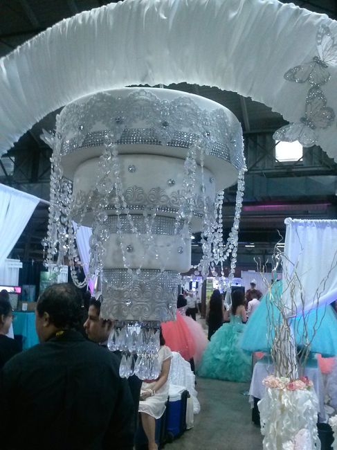 So I am obsessed with a suspended cake display. Can you give me some ideas on how to hang this? My venue has wood beams going across the ceiling so I'd be hanging from that.