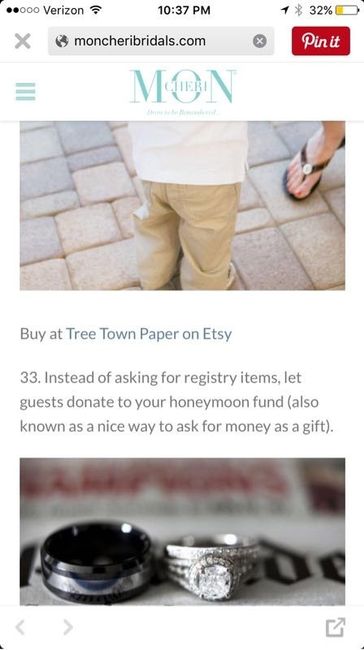 Reading an article I saw on Pinterest called "34 things that will make you say I wish I did that at my wedding." 33 is the reason people ( including myself early on in wedding planning) think honeyfunds are okay before they hopefully come to their senses!