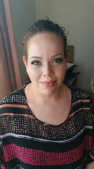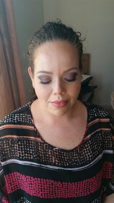 The MUA mentioned using plum. I told her that plum is actually one of my wedding colors so she went with it. When I saw the finished product I thought it was too much but I figured it was only because I wasn't used to it. I had a totally dark eye...plum and a smoked grey. When my hubby got home and saw me, he actually thought I was playing a joke on him! Needless to say....hw didn't like it and I knew he wouldn't cause he prefers less. I want him to like the way I look on OUR day!