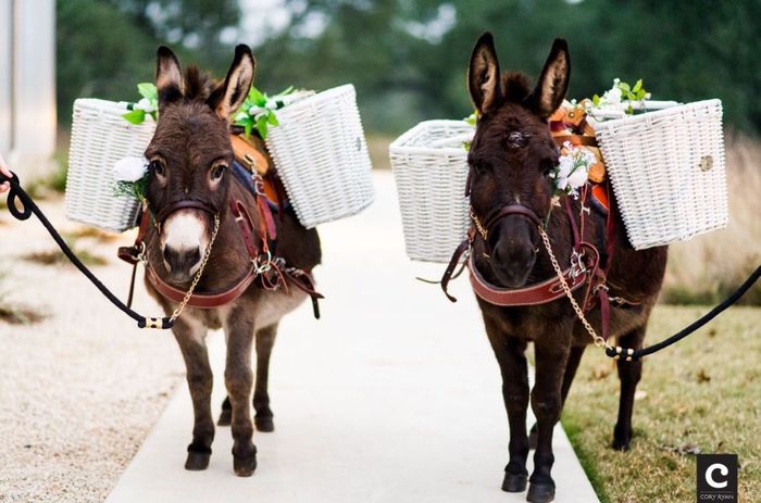 @futureMrs.DAO they're donkeys with satchels that carry around drinks to your guests during cocktail hour! The handlers stay with them, and let people take pictures and pet them (they're super sweet!). And my big question before we booked - they wear discreet diapers so no donkey poo at the venue lol.