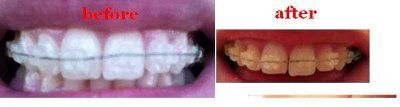 I had braces put on my teeth, why I don't know because I think they were fine but my FMIL did not. So she offered to pay for them and promised they would be off by the wedding (she works in a dental office)So I figured well there must be something wrong if she said I need them. So I thought they would come off and the end of May and then I would have a few weeks to adjust to talking again and let the my cuts heal that are on the inside of my mouth, and WHITEN! I was told they aren't coming off till a few days before the wedding. The first picture was taken the morning after the braces were put on and the other is from today. I only have a little over a month and there is a GAP! They look SO much worse now. I told him there was a gap the last time I went in and he told me there wasn't. They have to be pulled together ASAP and then I want the things OFF! HELP!!!