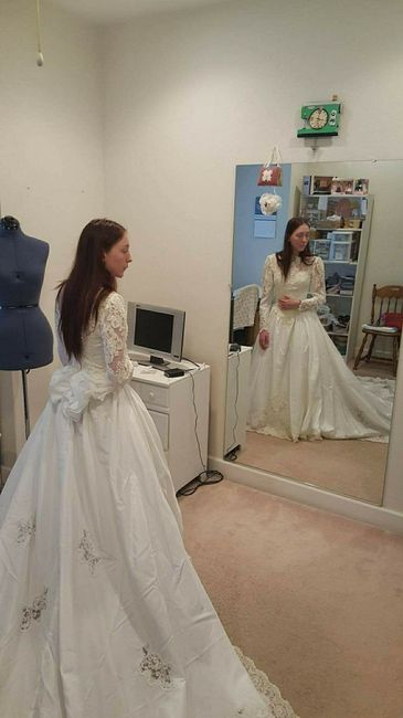 I was given a dress and decided to wing it and redesign it. Omg was that the most stressful, fun, rewarding and back to stressful thing EVER! Fortunately my Future MIL was a seamstress once upon a time and was able to help me through it all.