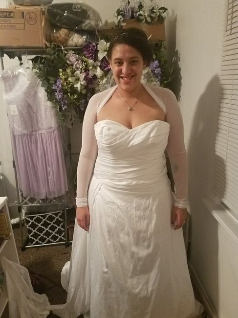 I need help looking for a shawl or little coat jacket something to wear for church because I'm showing too much skin my priest said anyone knows what would look good with the dress I've attach a similar dress that looks like mine anyone know a website my wedding dress n June 17 this year and Greensboro area