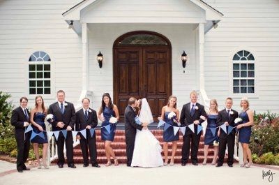 So, I am having a Fall wedding and I cannot part with my favorite color: blue. So, I decided on Alfred Sung dresses in midnight with deep cranberry colored bouquets with red/orange hypernicum berries. My dilemma? What color tuxes should I use? Does anyone have pictures they can share?
