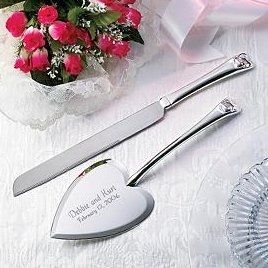 I am looking to get engraved cake server set and was wondering where to get them. I see oriental trading has them and they would probably be the cheapest option, but I'm not in love with any of their choices. I do like some options at Things remembered, but I do not like that a $35 set ends up being $65 after engraving it. I'm looking for something simple because I plan on attaching ribbon and a small daisy to the handle.