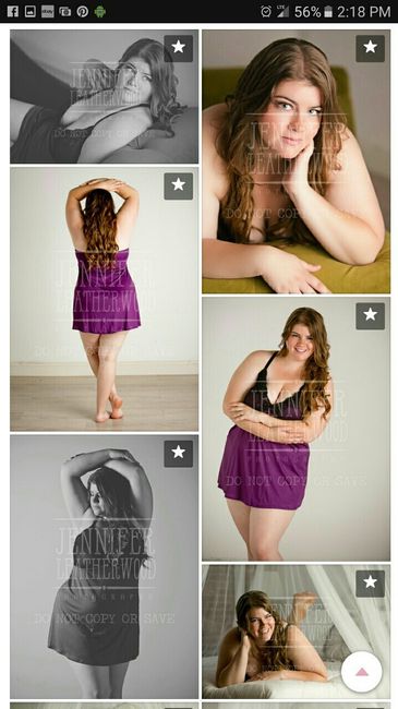 I am so relieved! Being "plus-size" I was very anxious that the boudoir shoot was going to be a waste of money and I wouldnt get any good pictures! The photographer sent me 80 pics to choose my favorites for the little black book I am giving FH on our way to honeymoon destination. For any of you beautiful people that are on the fence, go for it! Pick a good photographer and they will know how to position you to show off your best qualities! Go for it!
